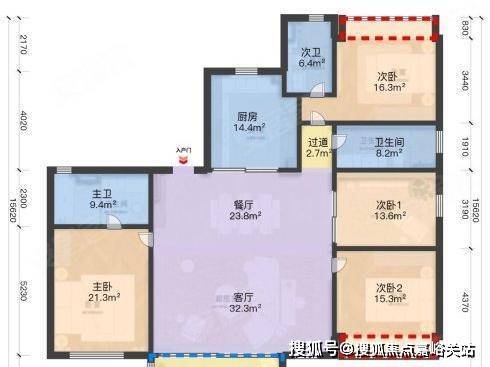 双主卧套房设计,三卫全明,三代同堂互不干扰。
