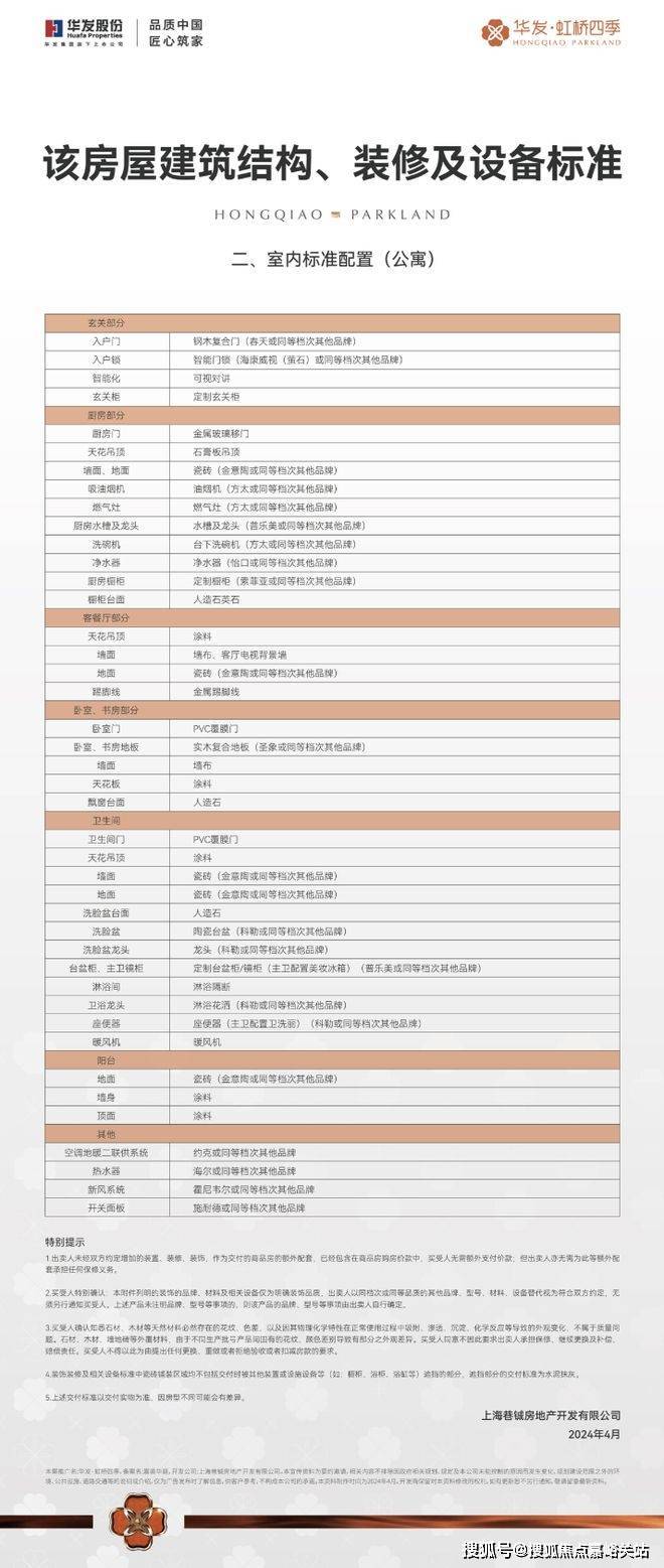 更有霍尼韦尔(或同等档次品牌)的新风、方太(或同等档次品牌)的油烟机和洗碗机、科勒(或同等档次品牌)的龙头和台盆、百年约克、圣象、施耐德等(或同等档次品牌)其他品牌国际一线品牌为生活保驾护航。