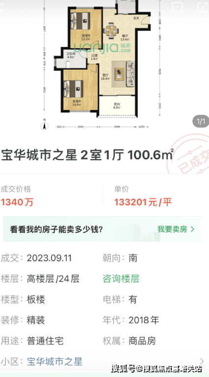 但是,现在在二手房市场,宝华城市之星,一枝独秀,某绿皮网站显示,项目在今年9月11日就成交了一套100㎡房源,成交单价高达13.3万!