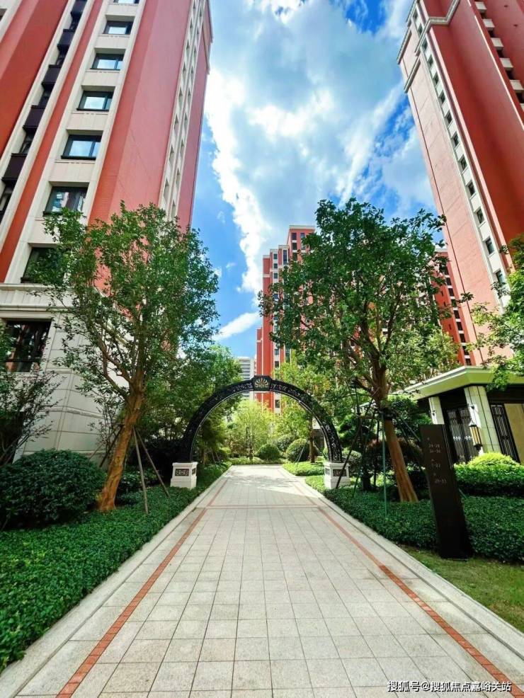 楼栋门前种榉树,门后种朴树,寓意美好;还有千年的西班牙橄榄树,下沉式庭院加上大面积中央草坪,园林景观十分出色。