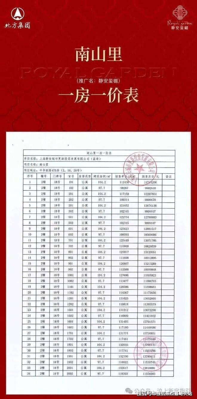 静安玺樾三期一房一价表▼