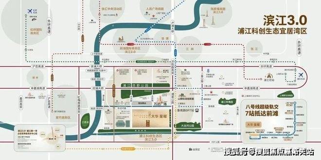 交通方面:2018年3月31日地铁浦江线(原8号线三期)开通试运行,5站即达沈杜公路站并与8号线换乘,可一线直达前滩。或通过BRT快线可一站无缝对接8号线沈杜公路!在自驾方面,项目周边拥有“三横三纵”立体交通网络!
