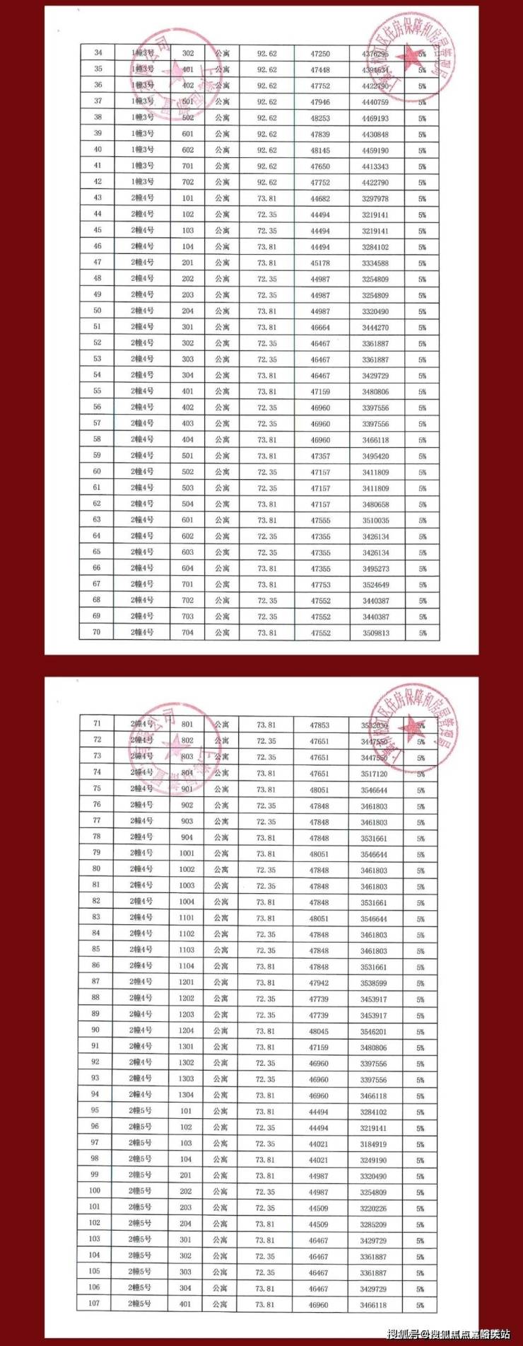 项目一房一价表