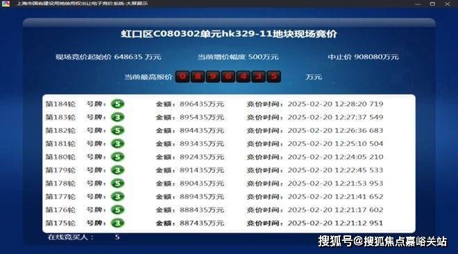 2025年2月,今年第一批次土拍中,经过184轮竞价,金茂&庆隆联合体以总价896435万元竞得虹口C080302单元hk329-11地块,溢价率38.2%,折合楼板价117474元/㎡,装修标准不小于4000元/㎡。