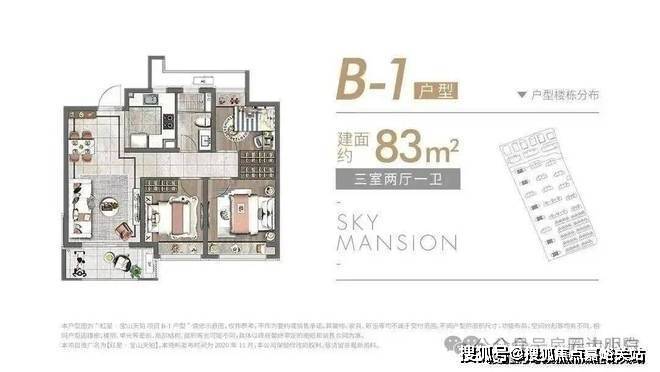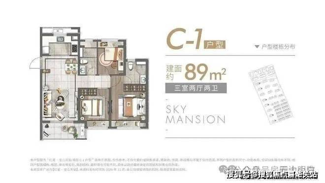 除了建面约89㎡的洋房, 建面约83~89㎡高层户型也各有所长,均是三房设计,无论是从结构布局,还是空间利用皆相得益彰,承载一家人的美好生活。 高层户型如下:
