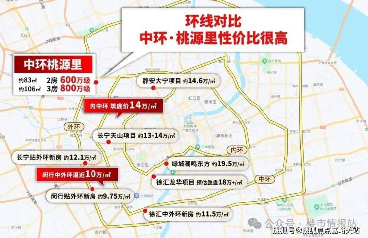 目前,中环筑底价基本14万/㎡:静安大宁约14.6万/㎡,长宁天山13-14万/㎡;长宁贴外环的项目已12.1万/㎡,甚至闵行靠外环的项目已逼近10万/㎡。