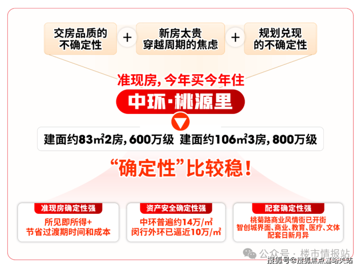 市场中能同时破解这三大难题的项目已属稀缺,而中环·桃源里,是当下”确定性“比较靠谱的楼盘。
