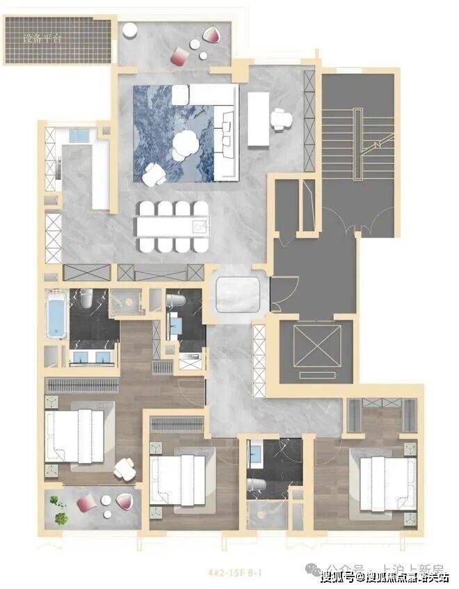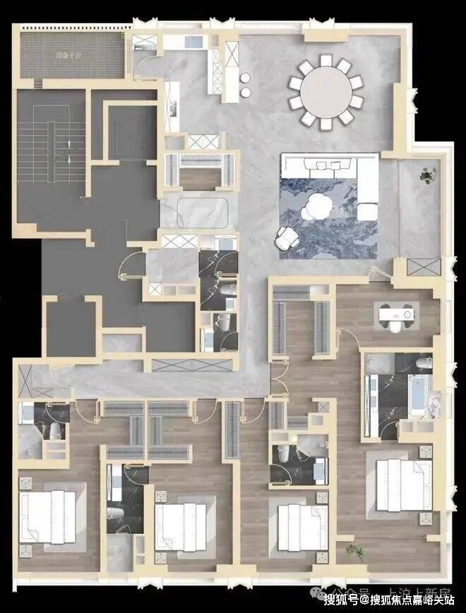 尤其主卧星级套房,配置独立衣帽间、书房,奢华主卫四分离,双台盆+淋浴区+大浴缸+智能马桶,私密性&奢适度无敌;