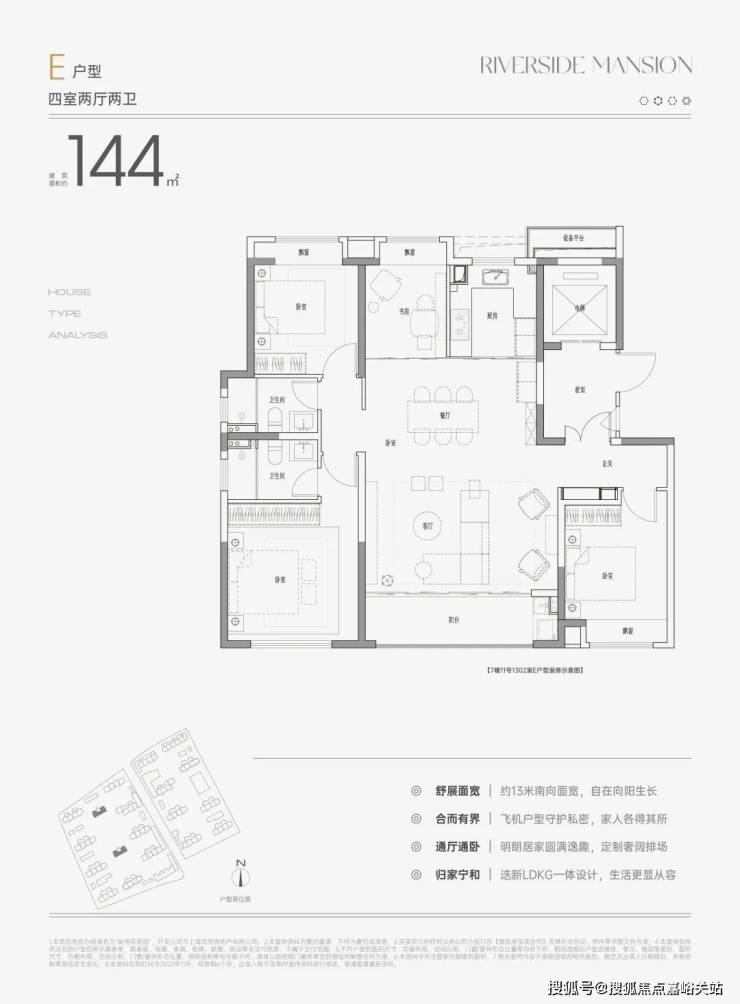 项目主推90-144㎡3-4房,户型种类多样,所有户型皆为大尺度面宽设计,三开间朝南,全卧飘窗,阳光满溢!