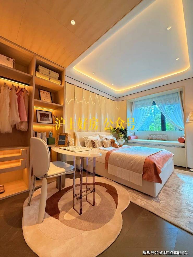 这可能是我见过 弧形元素最多的样板间,吊顶、客厅墙面及卧室背景墙均采用大量曲面处理,涵盖木饰面与奢石等多种材质弧形工艺,即便工序复杂且成本高昂,但绿城仍坚持落实,只为业主更高级的使用体验