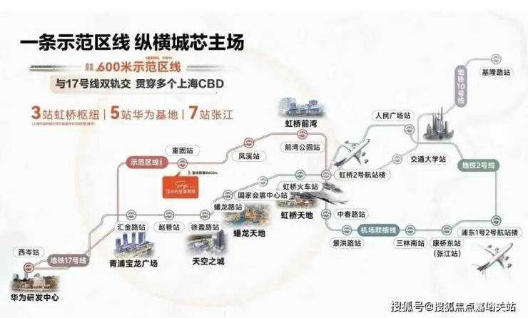 而示范区线(在建) 左手长三角一体化、华为,右手前湾、大虹桥总部商办 , 并通过虹桥枢纽,串联2号线及正在试运营的机场联络线, 把市中心、徐汇、闵行、张江等高能板块都纳入保利虹桥和颂·IN255的通勤版图。