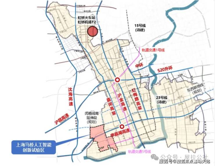 交通配套:地铁:5号线华宁路站,剑川路站约5KM,高速:嘉闵高架元江路出口约3公里、沪金高速、虹梅南路高架 沪昆高速、申嘉湖高速、沪闵高架, 高铁:距离上海虹桥枢纽站(高铁、机场)约15km,未来规划:嘉闵线延伸段