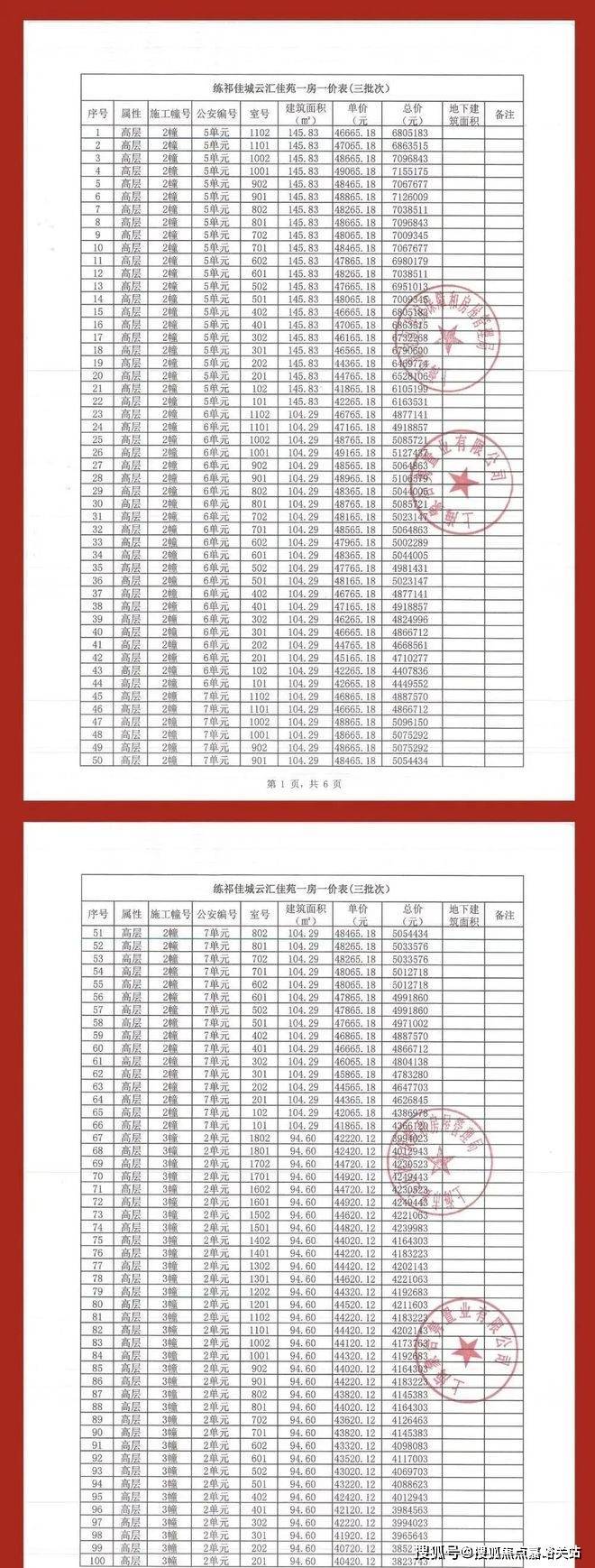 附一房一价表: