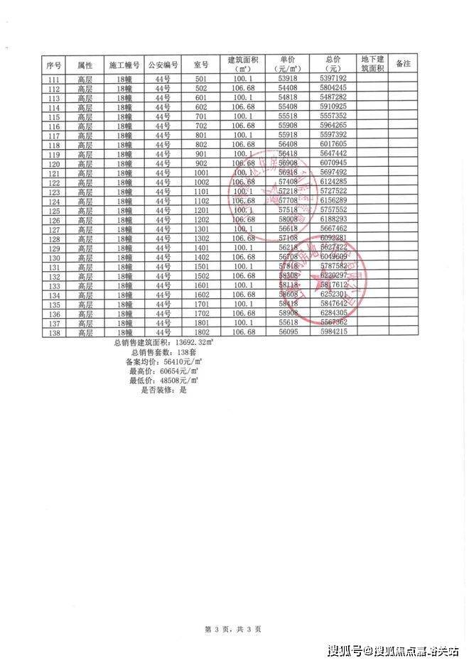 一房一价表: