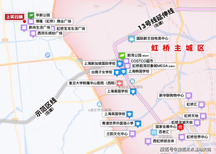 上实云端位于华新板块核心,与虹桥前湾地区核心直线距离不过2公里,与虹桥核心区直线距离不过8公里,可谓是近水楼台先得月。