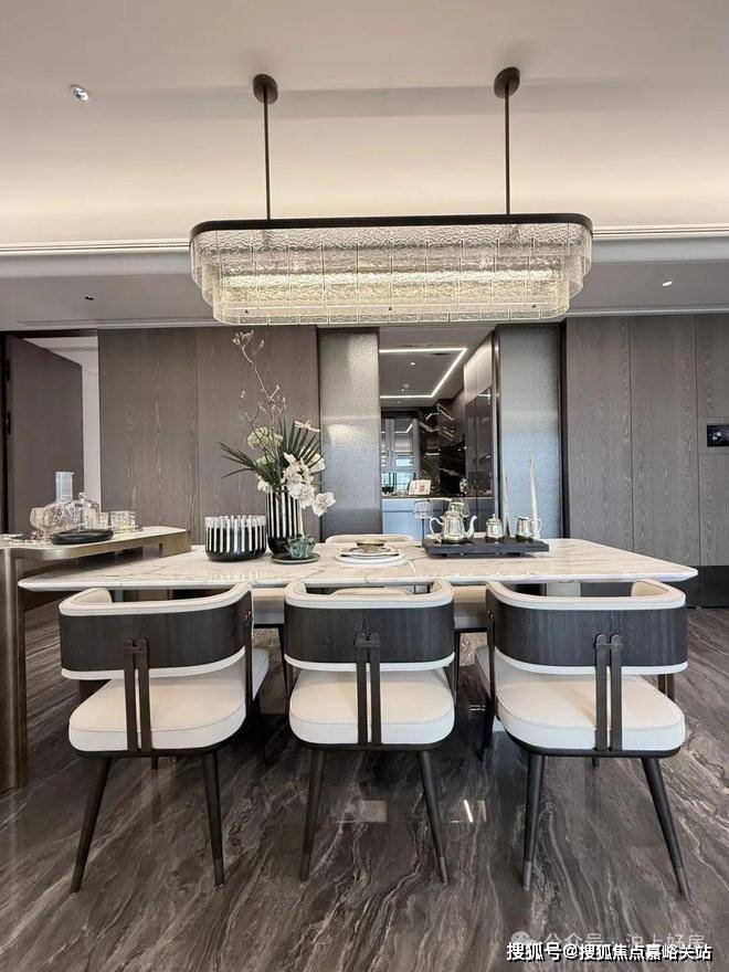 翎翠滨江通过大量的奢石、隐藏式细节将整个室内打造成了艺术的殿堂。