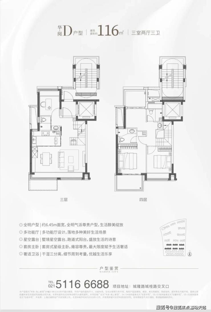 本宣传资料中的【一脉徐汇】指上海地铁9号线可从洞泾站8站直达漕河泾站。【双轨交】代表9号线、12号线,其中12号线在建中。本宣传资料为要约邀请,相关内容不排除因政府相关规划、规定及本公司未能控制的原因而发生变化,规划建设范围之外的环境、公共设施、道路交通等的说明或介绍,仅为广告发布时了解信息,供客户参考,不构成本公司的承诺。本公司将根据实际情况进行修改,敬请留意最新资料。买卖双方的权利义务以《上海市商品房预售合同》及附件等约定为准。本资料面积如无特殊说明均为建筑面积。本项目推广名为“华发·海上都荟”,备案名为“松耀华苑”,开发商:上海泾铖房地产开发有限公司。本资料制作时间为2023年11月,开发商保留对本资料修改的权利,如有更新恕不另行通知,敬请留意最新资料。华发海上都荟售楼处电话☎:400-8854-706✔✔✔