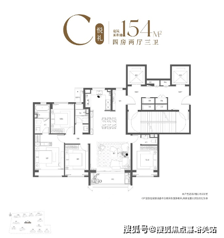 另外, 主卧小家化的套房设计、270度的南向瞰景阳台、四开间朝南的开阔尺度。