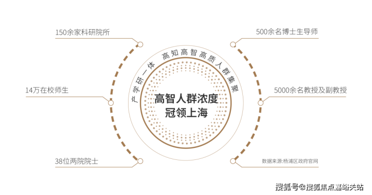 作为国家双创示范区域 聚集字节跳动、哔哩哔哩、抖音等企业总部 新经济产业势能澎湃 汇聚上海约1/3高等学府中央区 复旦大学、同济大学等美誉学府环伺 毗邻4大三甲医院 虹吸全球高智人群,界定纯粹圈层领地
