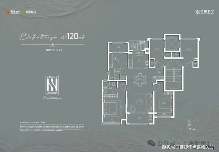 建面约120㎡3房2厅2卫:
