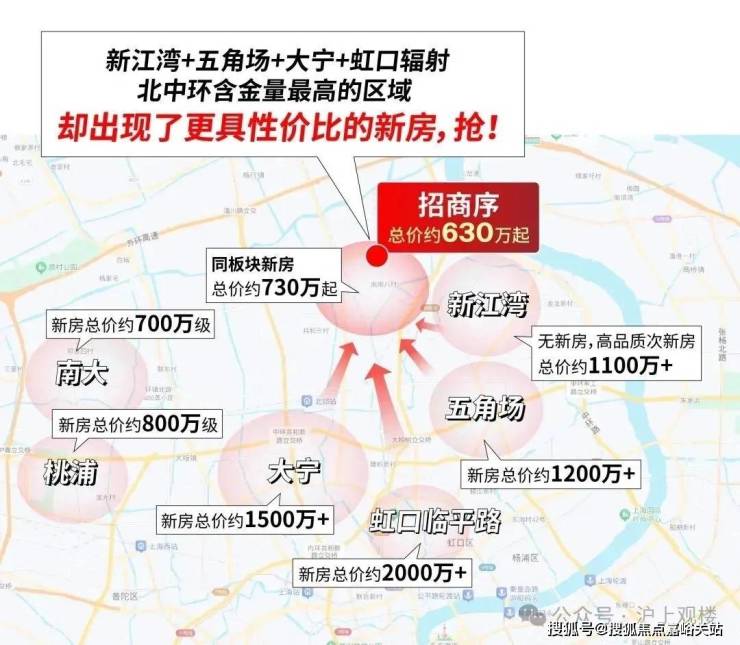 一方面,这里是杨浦新江湾、五角场;虹口临平路;静安大宁的下一站,而四大高端豪宅区内的新房门槛大多都在约1200万+,比招商序贵了接近一倍。在大水漫灌之下,招商序所在的区域价值水涨船高,位列宝山第一。