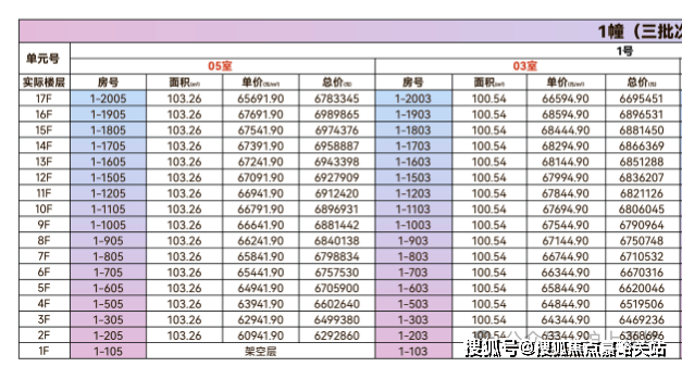 最新一房一价表!