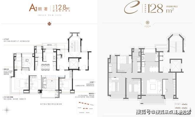 事实上,保利始终在对自己的产品进行迭代升级,我们以建面约128㎡4房为例,下图左为保利虹桥和著约128㎡4房,图右为杨浦滨江保利外滩序BUND45 建面约128㎡4房。