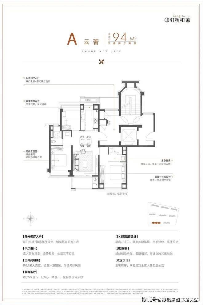 建面约94㎡3房:“麻雀虽小五脏俱全”虽然相比一般百平米左右三房,☑️☑️保利虹桥和著售楼处电话:400 - 8377 - 020☑️☑️该户型在建筑面积上缩减了约10㎡,但功能与尺度却不逊色,南北通透的飞机户型,没有过道浪费,因而保证了适宜的尺度感,LDKG一体化设计让几个功能区独立又互通,没有视觉遮挡也使得将空间感进一步拓展,阳台270°采光+多飘窗设计,☑️☑️保利虹桥和著售楼处电话:400 - 8377 - 020☑️☑️打开更多的采光面与视野面,也大大提升了室内的通透感与舒适度,细节方面,次卫干湿分离的设计,提高了使用效率这对于小户型非常重要。☑️☑️保利虹桥和著售楼处电话:400 - 8377 - 020☑️☑️