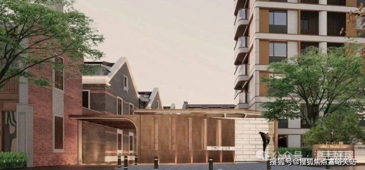 同时,建筑师还利用车行主入口的空间,结合水景、景墙和绿化打造出别具风格的开放式景观节点,并在风貌保护区的巷弄内设置端头对景,宅间花园等。
