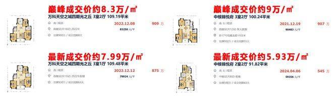 然而同区域地段更好的中核锦悦府,巅峰成交价超过9万/㎡,如今最新数据中有一套中楼层房源5.9万/㎡成交,对比初始约6万/㎡新房均价,甚至已经“破发”!
