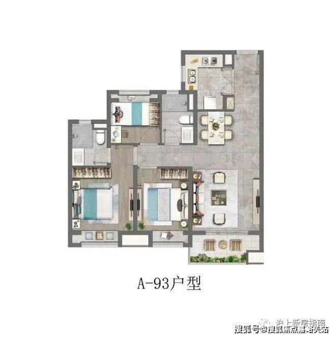建面约93㎡3房2厅2卫