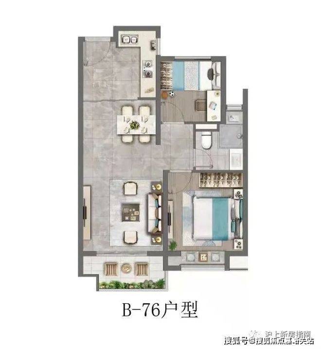 建面约76㎡2房2厅1卫️