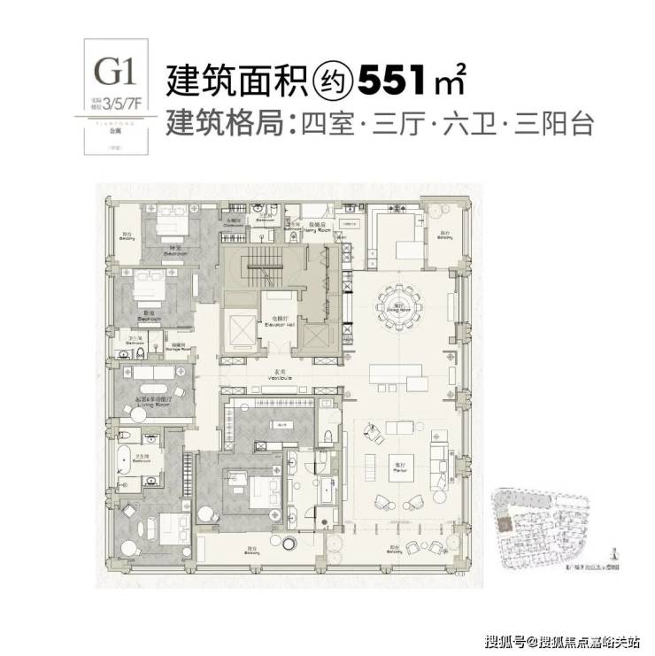 项目的平层户型无论是功能性还是尺度感都足以承载一个大家族的居住需求。十字中轴的布局,方正无比的格局,大开间朝南的设计都极大的保障了每一位家庭成员的私密性和舒适度!