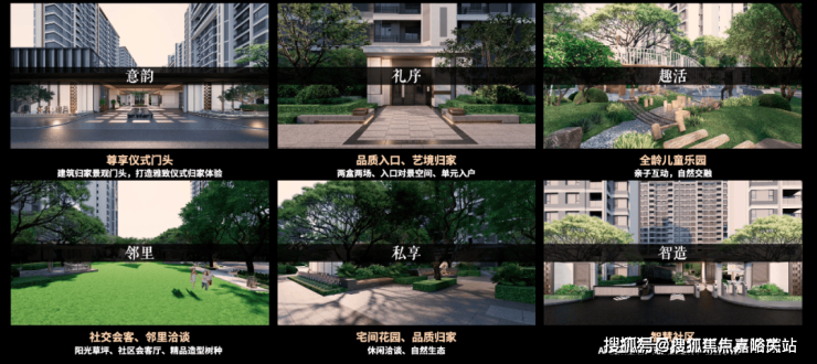 归家礼序上,项目设有“迎—礼—聚—活—登”五重归家礼序,森活绿地无界相融,营造城市与家之间的松弛缓冲带,提高社区品质感和仪式感。