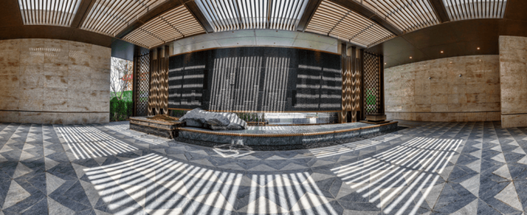 这两年上海楼市奢石内卷,进口石材已不新鲜。但浦发莲园约60米的入户门庭,用材量仍然让人意外。