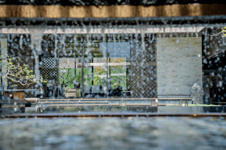 浦发莲园的园林以“莲生六境、步步生莲”为主题,从酒店环岛的“引莲入境”,到艺术画廊的“步步生莲”,到会客厅的“踏水赏莲”,再到庭园的“携莲归心”,归家动线像一场游园。