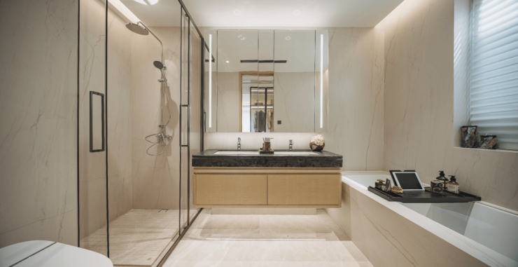 浦发莲园的精装标准,也超出了同价位段的产品。三大件用的是日立中央空调、威能地暖锅炉、霍尼韦尔新风系统,搭配智能家居。卫生间选用德国唯宝品牌卫浴。厨房配置了德国美诺蒸烤一体机、洗碗机,西门子油烟机、灶具,瑞仕弗兰卡水槽,怡口末端净水。