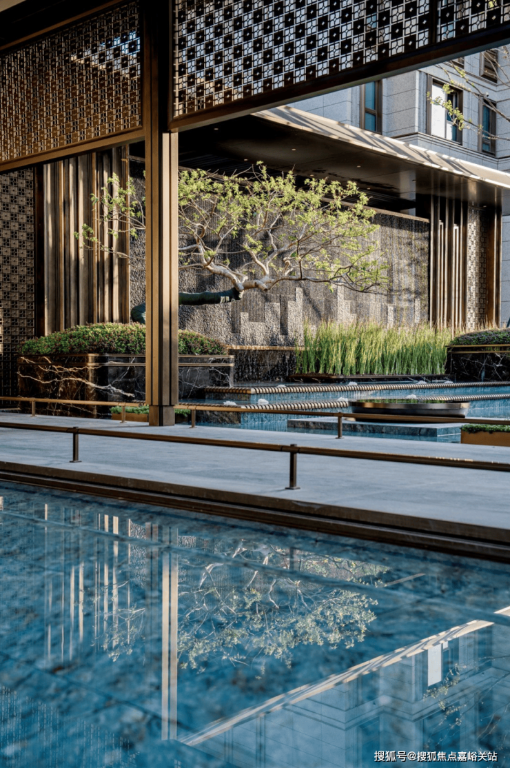 天然玉石等多种颜色奢石,再辅以深咖色定制纹样金属,让这个门庭成为板块内最具识别度的存在。