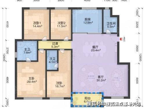 双主卧套房设计,三卫全明,三代同堂互不干扰。
