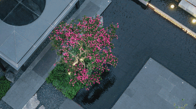 值得一提的是,所看到的每一株苗木皆为精挑细选,世界选种。 单株价值高达40万左右的日本进口羽毛枫、静安石库门旁同款网红娜塔栎、被艺术界人士誉为"活着的雕塑"的古桩紫薇……多种珍木与多彩花境相搭配,如同一个个花园岛屿,营造高低错落的景观层次感。