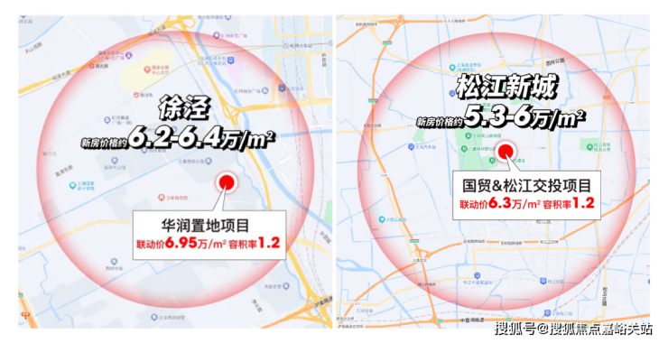 比如松江新城新房均价普遍在5.3-6万/㎡,而容积率1.2的项目的联动价高达约6.3万/㎡。(数据来源,上海土地交易市场 2023年出让土地)