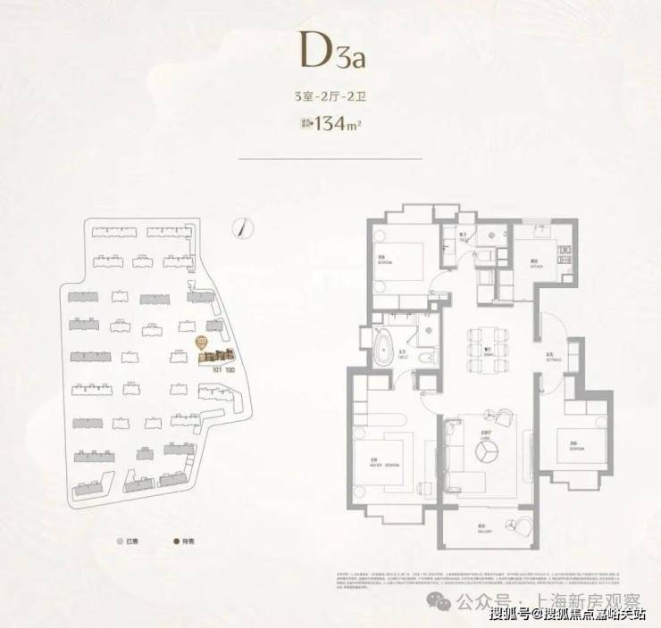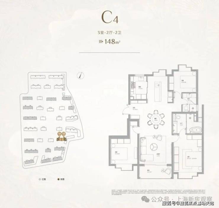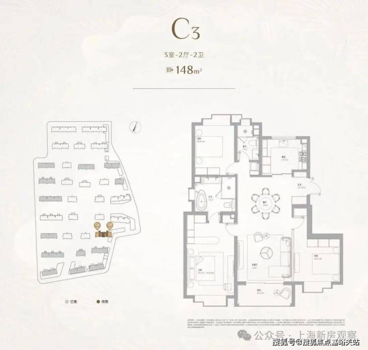 项目一期房型均呈现大开间、短进深的特点, 主力房型为131㎡3房,占到一期总量的70%,其余房型为100㎡2房,155㎡3房,175㎡4房。 项目一期于2022年11月入市,推出621套房源(C区),总认购1400+组,认购率225%,入围分55.28,开盘售罄!