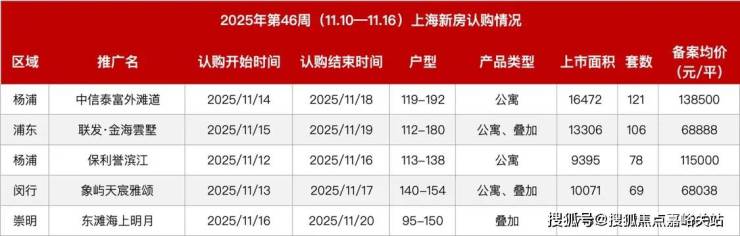 此外,浦东汤臣君品(均价19.68万元/平方米)与黄浦金陵华庭等高端项目认购率均超过140%,显示高总价楼盘在特定客群中仍具吸引力。但部分中端项目如中建山水雅境三期、招商序等去化率偏低,市场接受度有限。