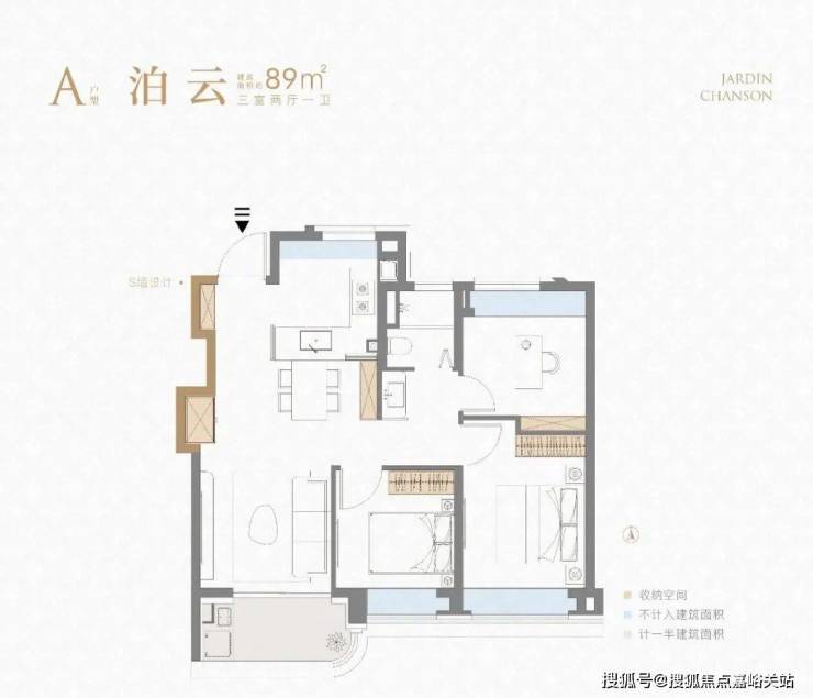 重点我想说说该户型的收纳,大量S墙的设计简直见缝插针,极大的扩容了家的储物角落,消减了业主生活的繁琐。