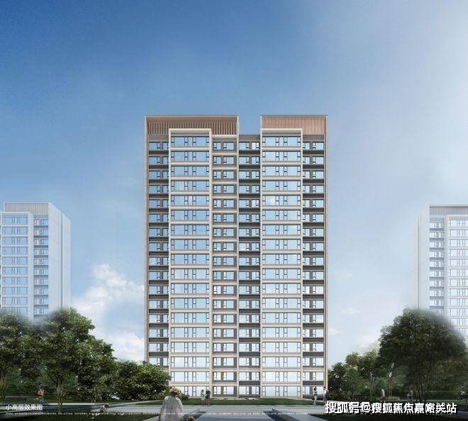 建筑立面以现代简约设计语言为主,采用金地新格林系风格,化简去繁,提炼审美精髓,米白+自然木纹为立面底色,与建筑流动线条辉映交织,迎合时代年轻艺术审美。