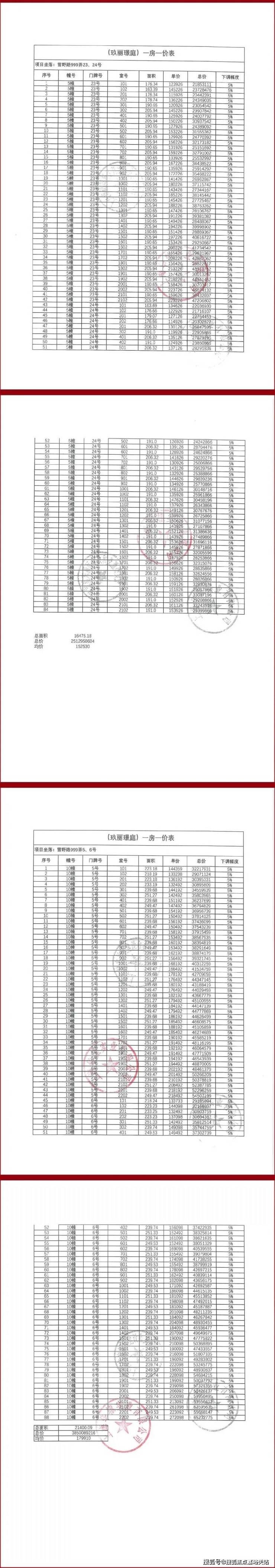 一房一价表(有的已经卖掉)