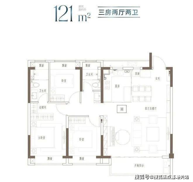 建面约121㎡3房2厅2卫▼