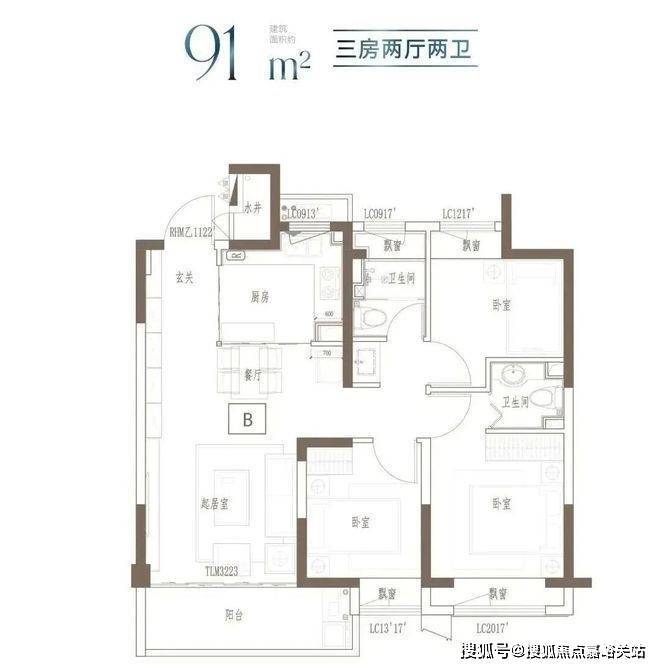 建面约91㎡ 3房2厅2卫▼