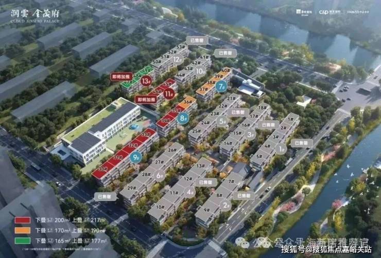 该地块拟建设13栋4F叠加别墅,有4个主力户型,包括建面约178㎡上、下叠,建面约200㎡上、下叠。其中,建面约178㎡上下叠主要分布在地块西侧,建面约200㎡上下叠主要分布在地块东侧。