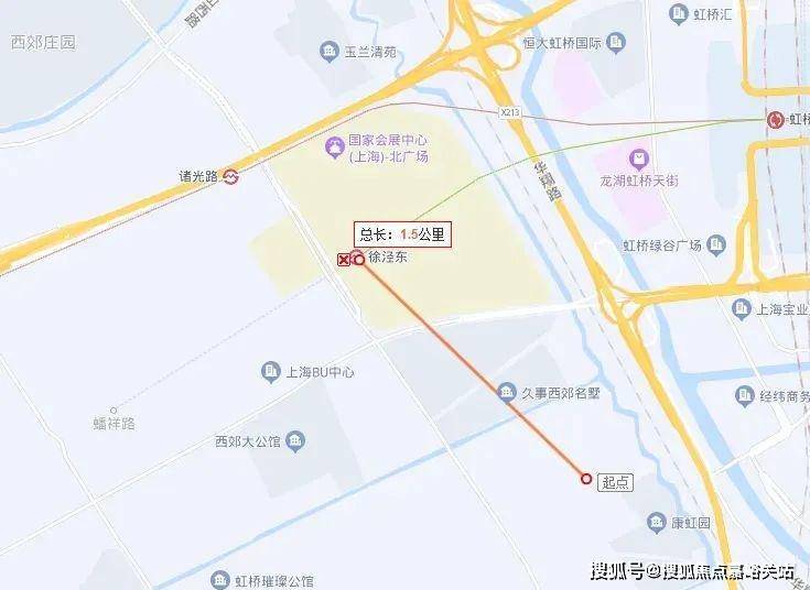 • 项目位于大虹桥核心区域,距离国家会展中心直线距离仅约1公里,地理位置优越。